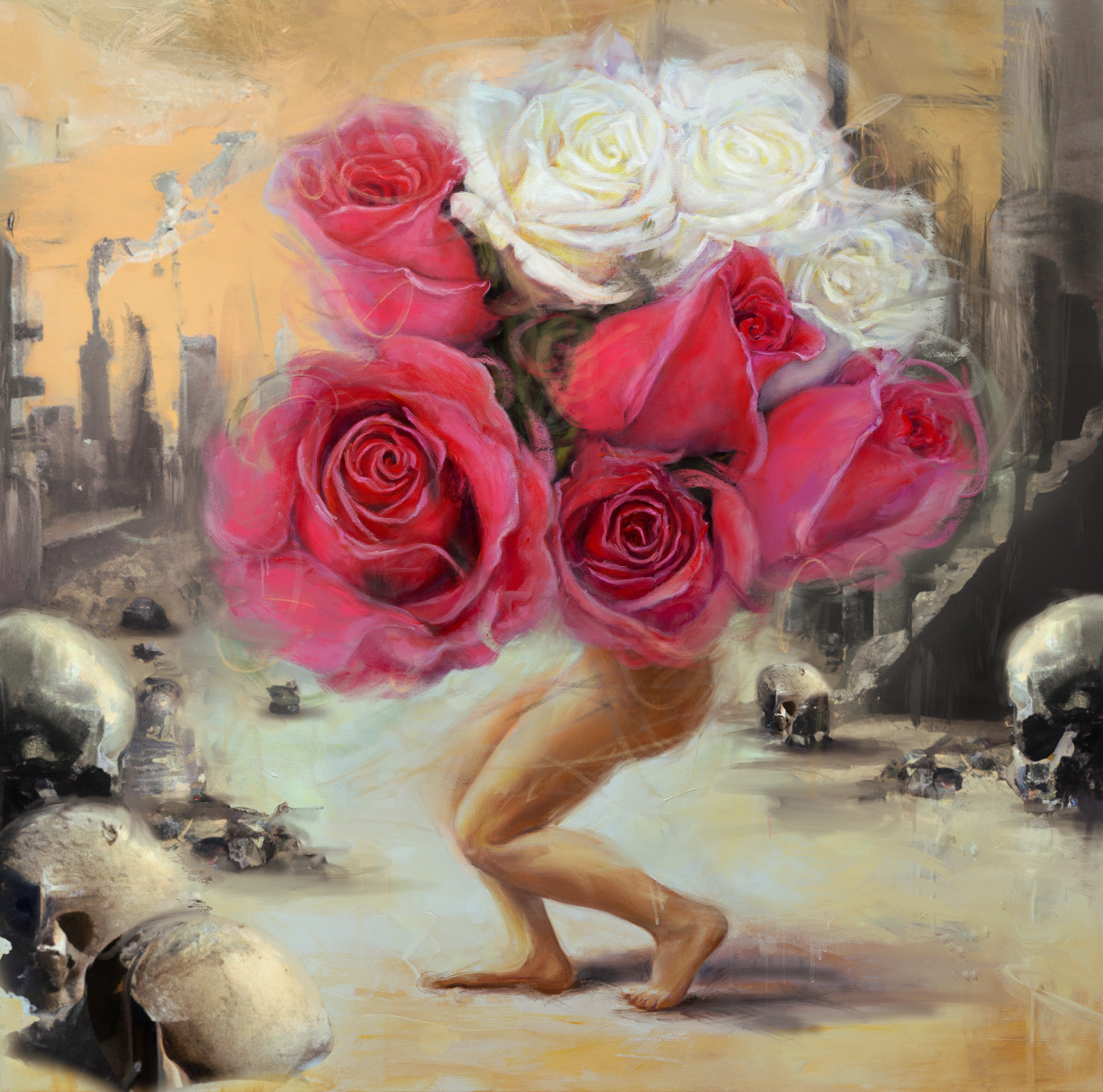 I emigrated from my country of birth, Iran, a few years after the revolution of 1978-79. Canada accepted me. Immigration enriched me. The rest can be viewed in my painting. This painting is homage to all people who leave everything behind for a new beginning.